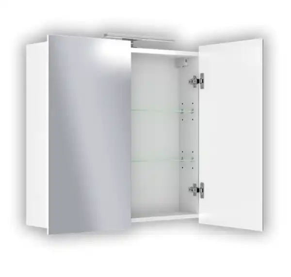 2-türig, mit LED-Aufsatzleuchte (Tageslicht), 2 Glasablagen, zum Selbstaufbau, 70 x 70 x 16 cm (B x H x T)