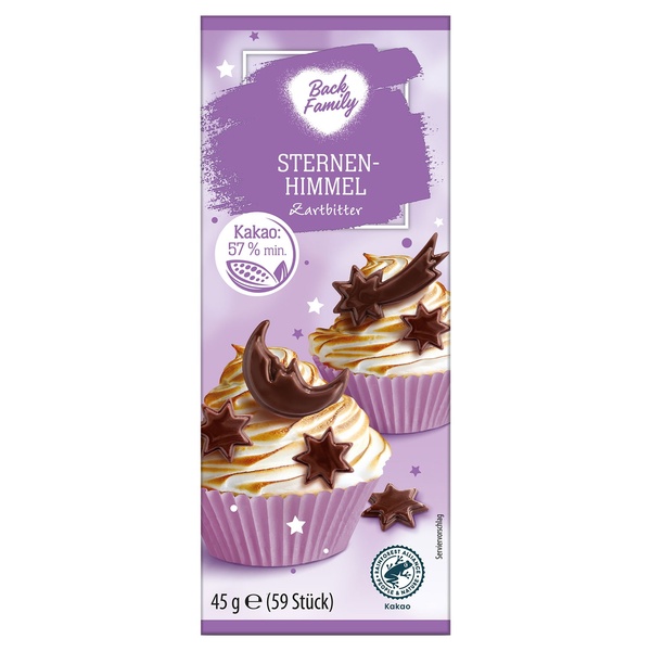 - Je 45-g-Packung - Kakao: Rainforest Alliance-zertifiziert - BACK FAMILY: Die ALDI Eigenmarke für Backspaß und die ganze Familie. Mit hochwertigen Zutaten, edlen Aromen und besonderen Dekoren für jeden Anlass * Wir bitten um Verständnis, dass einzelne Artikel aufgrund der aktuellen Situation in der internationalen Seefracht zeitweise nicht verfügbar oder erst später lieferbar sind. Bitte beachte, dass diese Aktionsartikel im Gegensatz zu unserem ständig verfügbaren Sortiment nur in begrenzter Anzahl zur Verfügung stehen. Sie können daher schon am Vormittag des ersten Aktionstages kurz nach Aktionsbeginn ausverkauft sein. Alle Artikel ohne Dekoration.