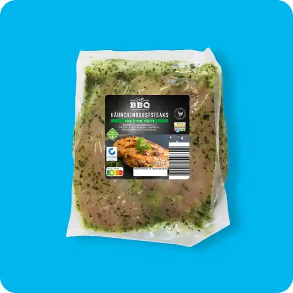 Französische Kräuter oder Rote Paprika; aus dem Hähnchenbrustfilet; Haltungsform 2²; QS-zertifiziert; ohne Gentechnik; je 550-g-Packung; kg-Preis 9.07