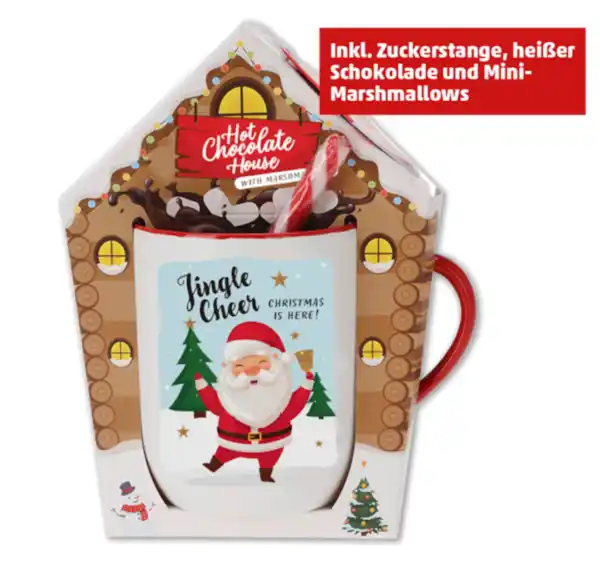 Inkl. Zuckerstange, heißer Schokolade und Mini-Marshmallows