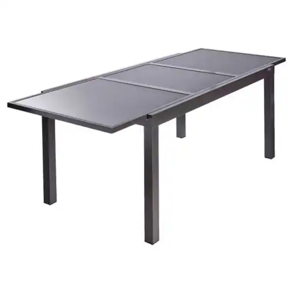 \n- Je Stück - Tischplatte aus Sicherheitsglas - Schnell und einfach auf 220 cm verlängerbar - (L x B x H): 160/220 x 90 x 75 cm - Pulverbeschichteter Aluminiumrahmen mit Sicherheitsverriegelung - Füße mit Schutzkappen und Höhenverstellung - UV-beständig, rostbeständig und langlebig - Maximale Belastung: 50 kg - Für den privaten Außenbereich, leicht zu reinigen
