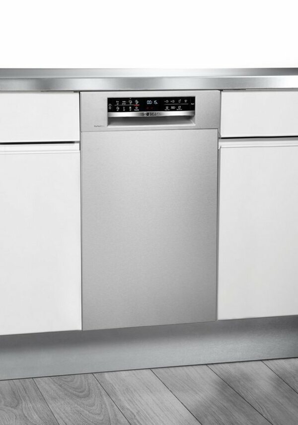 Beim SPU6ZMS35E handelt es sich um einen Unterbaugeschirrspüler von BOSCH. Durch seine Abmessungen von 44,8 x 81,5-87,5 x 57,3 cm (BxHxT) ist der Unterbaugeschirrspüler extra schmal. Mit einem Fassungsvermögen von 10 Maßgedecken ist die Geschirrspülmaschine ausgezeichnet geeignet für Haushalte ab vier Personen. Das Gerät verfügt über die Energieeffizienzklasse C (Skala: Einheitsskala (A bis G)) und gehört dadurch zu den umweltschonenden Geräten auf dem Markt. Der Umwelt etwas Gutes tun: Im Automatikprogramm erkennen Sensoren die Beladungsmenge und den Verschmutzungsgrad. Danach wird der Spülvorgang auf die jeweiligen Gegebenheiten eingestellt. Sorgfältig zum perfekten Glanz: Mit dem Schonprogramm werden speziell Gläser tadellos und schonend gereinigt. Hygienisch einwandfrei, natürlich auch bei starkem oder hartnäckigem Schmutz – das Intensivprogramm reinigt zuverlässig und schonend: Ob Glas, Teller, Pfanne oder Kochtopf. Anhand der Einstellung Eco besteht die Möglichkeit, Teller und Gläser umweltschonend und energiesparend zu spülen. Beim Kurzprogramm wird der Wasserdruck erhöht, wodurch sich die Waschzeit deutlich verkürzt. Das spart am Monatsende nicht nur Geld, sondern schützt auch die Umwelt. Das Wasserschutzsystem schützt sicher und effizient vor Wasserschäden. Die Wasserzufuhr wird gestoppt, kein Wasser kann aus dem Gerät austreten. Um einen Spülvorgang zu einem bestimmten Zeitpunkt zu starten, verfügt die Geschirrspülmaschine über eine hilfreiche Startzeitvorwahl. Die Geschirrspülmaschine ist eine absolut verlässliche Hilfe für jeden noch so anspruchsvollen Haushalt. Diejenigen, die einen funktionalen und ausdauernden Geschirrspüler suchen, liegen hier genau richtig.