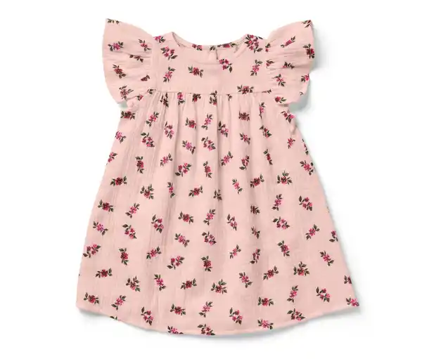 Baby-Musselinkleid Farbe: Rosa mit mehrfarbigem Blumen-Alloverprint Material: 100% Baumwolle (aus ökologischem Anbau) Sonstige Hinweise: Größenlauf/Alter: Gr. 62/68 (ca. 2 – 6 M.) Gr. 74/80 (ca. 6 – 12 M.) Gr. 86/92 (ca. 12 – 24 M.) Gr. 98/104 (ca. 2 – 4 J.) Am Rücken durch Knöpfe zu schließenLeichte, sommerliche Musselin-QualitätMit Volant-ÄrmelnTeilungsnaht unterhalb der BrustA-linienförmiger SchnittGOTS organic, zertifiziert durch CU 809415Dieses Kleid schützt Wasserressourcen