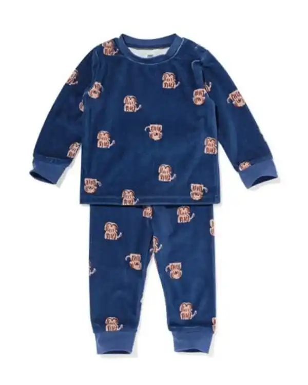 Babypyjama Samt Hund blau