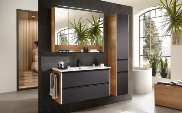 Badprogramm Bordeaux, schwarz/Eiche Halifax-Nachbildung, inkl. LED-Beleuchtung