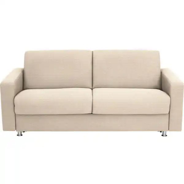 Gemütlich im Wohnzimmer sitzen und ausgiebig erholen – mit Ihrem Bali Schlafsofa aus der Serie 'Messina' in Magnolienfarben ist das ganz einfach. Wissenswert: B x H x T: ca. 195 x 84 x 100 cm Sitzfläche: ca. 163 x 56 cm (B x T), Sitzhöhe: ca. 45 cm Maße der Liegefläche: ca. 140 x 200 cm (B x L) Fühlbarer Komfort Der Bezug besteht aus widerstandsfähiger Synthetikfaser (ca. 100 % Polyester) mit einer Flachgewebe-Oberfläche: Das Material sieht fein aus und überzeugt darüber hinaus aufgrund einer guten Lichtechtheit sowie einer sehr guten Abriebfestigkeit. Der echt bezogene Rücken gestattet das freie Positionieren der Couch im Raum. Eine bequeme Schaumstoff-Polsterung unterstützt den Körper und fördert den Komfort. Über hochelastisches, geräuscharmes Sitzen freuen Sie sich auf dem Innenleben aus Kaltschaum. Die feine, gleichmäßige Porung macht ihn sehr luftdurchlässig und punktelastisch, was eine ergonomische Beschaffenheit begünstigt. Auf der Suche nach einer Lösung für den multifunktionalen Wohn- und Schlafbereich? Dann kommt dieses Sofa mit Dauerschläfer-Schlaffunktion genau richtig. Sehenswerter Hingucker Wer sich für Produkte aus dem Hause Bali entscheidet, darf sich auf bewährte Verarbeitungsqualität und clevere Entwürfe freuen. Die naturnahe Farbgebung in Magnoliefarben bildet den Ausgangspunkt für eine harmonische Feel-good-Atmosphäre. Mit den zylindrischen Füßen aus Metall in Chromfarben ist ein sicherer Stand gegeben und das Design wird adäquat komplettiert. Im Lieferumfang enthalten: Rücken echt bezogen Ein It-Piece, das Ihren Erwartungen gerecht wird: Dieses magnoliefarbene Schlafsofa von Bali mit Flachgewebe-Bezug tut einiges fürs individuelle