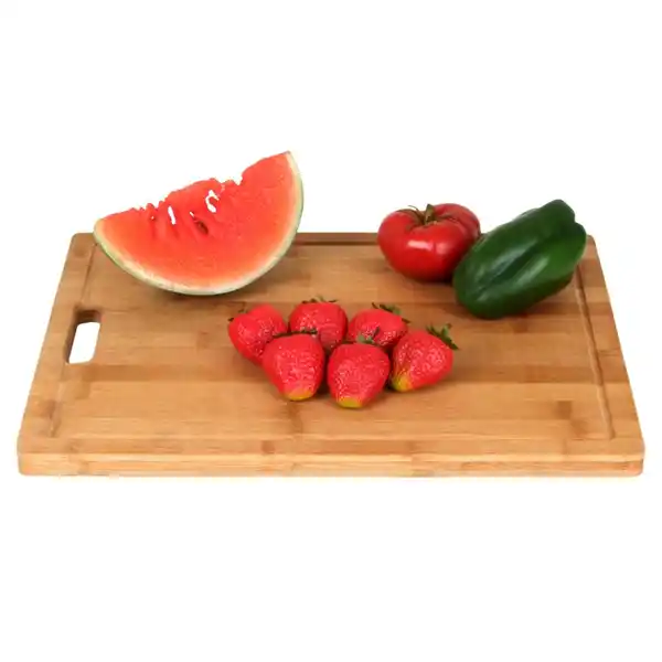 Massives Schneidebrett aus Bambus, auch für gröbere Arbeiten geeignet, da es eine standfeste und sichere Unterlage bietet.