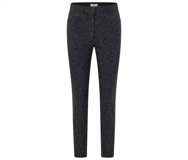 Bedruckte Bengalin-Hose Farbe: Schwarz mit tonalem Leo-Alloverprint Material: 70% Viskose, 26% Polyamid, 4% Elasthan (Creora®) Maße: Innenbeinlänge ca. 76 cm Passform: Skinny Fit Bequeme und elastische Qualität mit ViskoseBund mit Gürtelschlaufen, Knopf und Reißverschluss2 Eingrifftaschen vorne und 2 aufgesetzte GesäßtaschenTonaler Leo-PrintMit Elasthan: formbeständig, perfekter Sitz, hoher Tragekomfort