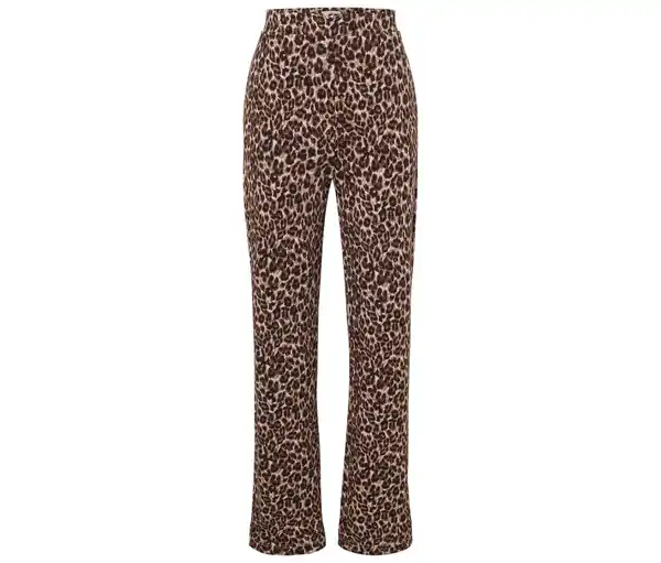 Bedruckte Jerseyhose Farbe: Beige mit braun-schwarzem Leo-Alloverprint Material: 85% Viskose, 13% Polyamid, 2% Elasthan (Creora®) Maße: Innenbeinlänge ca. 76 cm Passform: Regular Fit Elastische Qualität mit ViskoseWeites, gerades BeinElastischer Bund – kein EinschnürenSeitliche EingrifftaschenModerner Leo-AlloverprintMit Elasthan: formbeständig, perfekter Sitz, hoher Tragekomfort