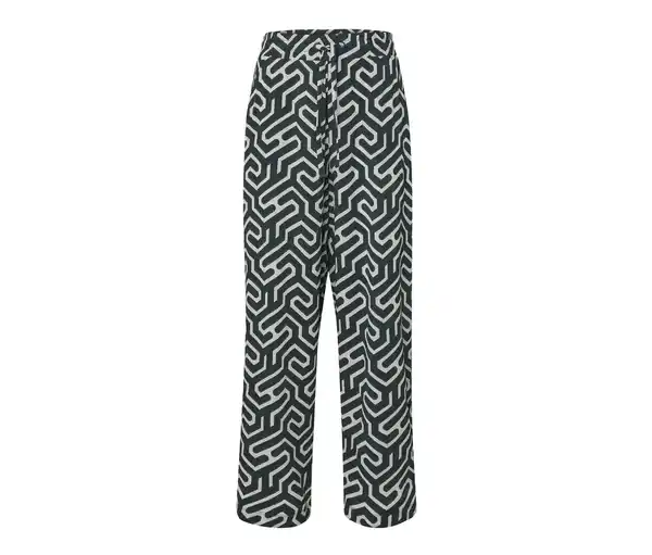 Bedruckte Schlupfhose in Crinkle-Optik Farbe: Creme mit dunkelgrünem Alloverprint Material: 98% Polyester (recycelt), 2% Elasthan (Creora®) Maße: Innenbeinlänge ca. 76 cm Passform: Comfort Fit Leichte, gewebte Qualität in Crinkle-OptikElastischer Bund mit BindebandWeites, gerades BeinSeitliche EingrifftaschenMit Elasthan: formbeständig, perfekter Sitz, hoher TragekomfortDiese Hose schont RessourcenModerner graphischer Print