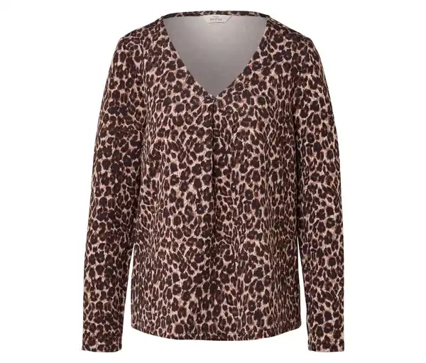 Bedrucktes Blusenshirt aus Modal-Mix Farbe: Beige mit braun-schwarzem Leo-Alloverprint Material: 50% Modal (TENCEL™), 43% Polyester, 7% Elasthan (Creora®) Maße: Gesamtlänge ca. 66 cm (Gr. M 40/42) Passform: Regular Fit Weich fließende, elastische Scuba-QualitätV-AusschnittEingelegte Falten auf der VorderseiteMit Elasthan: formbeständig, perfekter Sitz, hoher TragekomfortModerner Leo-Alloverprint
