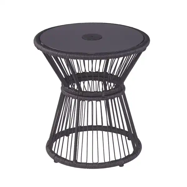 integrierte LED-Beleuchtung|vollständig lackiertes Sicherheitsglas|robuster Stahlrahmen; Viele Pflanzen und Dekorationsartikel sollen für einen gemütlichen Außenbereich optisch ansprechend platziert werden. Doch wie schafft man diese Wirkung? Hol dir jetzt den runden Beistelltisch 'Coco'. Er hat Abmessungen von 46 x 50,5 cm – passend für viele Balkone. Die Tischplatte ist optisch ansprechend, weil sie aus Sicherheitsglas besteht. Dank seiner Beschaffenheit aus verzinktem Stahl und verzinktem Polyethylengeflecht ist das Gestell dazu besonders robust. Unvergessliche Stunden im Freien mit deinen Liebsten – der Beistelltisch wird ein wesentlicher Bestandteil davon!
