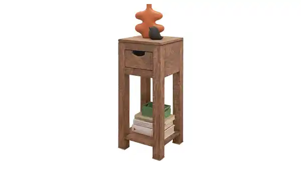 Auch funktional zeigt sich der Beistelltisch NATURE durchdacht und alltagstauglich. Eine Schublade mit integrierter Griffmulde bietet dezenten Stauraum für kleinere Alltagsgegenstände, während das offene Ablagefach Platz für Bücher oder dekorative Elemente schafft. So verbindet der Beistelltisch traditionelle Optik mit moderner Nutzung und schafft eine aufgeräumte, warme Atmosphäre.