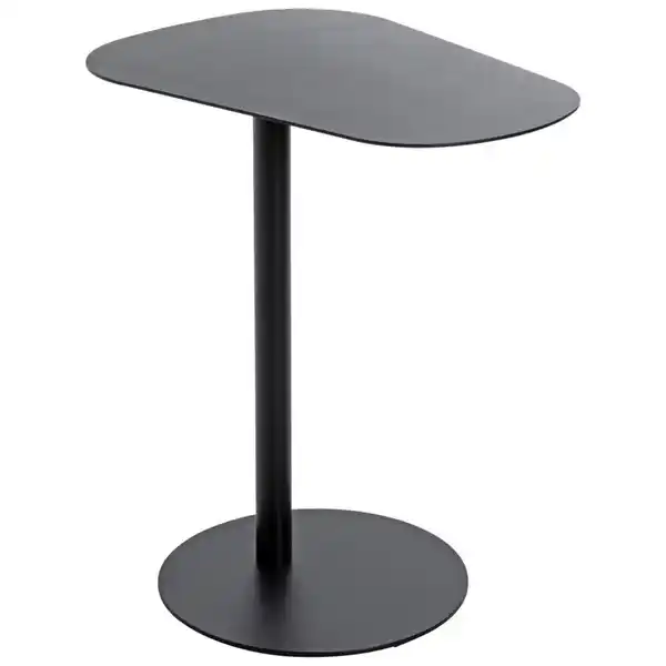 Dieser Beistelltisch aus Metall in Schwarz kommt wie gerufen, wenn Ihnen hinsichtlich der Einrichtung eine klare Formensprache wichtig ist. Er besteht aus pulverbeschichtetem Stahl und bleibt Ihnen als solides Möbel lange erhalten. Aufgrund des C-förmigen Designs mit runder Bodenplatte und Säule können Sie ihn sowohl frei im Raum als auch direkt neben Ihrem Sofa oder Sessel platzieren. Auf einer Höhe von ca. 60 cm stellen Sie Getränke und Snacks auf der ca. 53 x 38 cm (L x B) großen, organisch geformten Tischplatte ab oder verwirklichen dort individuelle Deko-Ideen. Mit diesem maximal bis ca. 15 kg belastbaren Beistelltisch aus Metall in Schwarz komplettieren Sie Ihr Interieur stilgerecht!