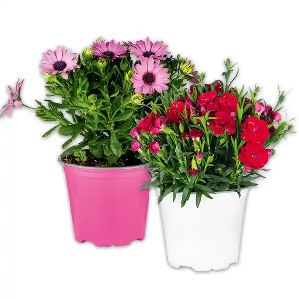 - in den Sorten z.B.: Felicia, Mesembryanthemum, Osteospermum, Dianthus oder Gazanie