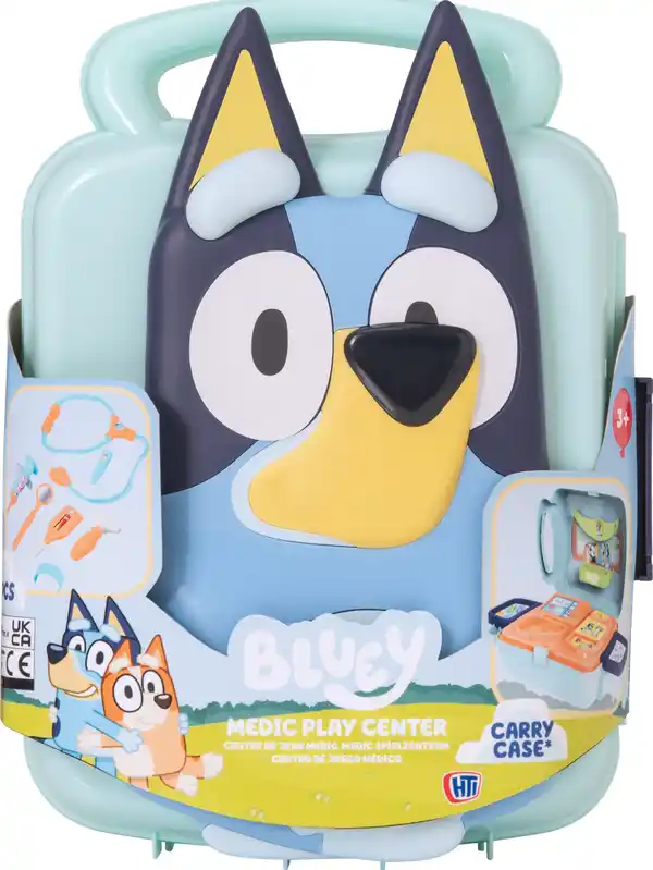 Das Bluey Play Center ist ein lustiges Spielset zur Bluey Vorschulserie mit allem medizinischen Zubehör, das für medizinische Rollenspiele benötigt wird! Öffne den Koffer, befestige die Theke und die Seitenwände an der Basis, füge die Ablage und die Haken am Deckel hinzu, und schon kannst Du deine Patienten behandeln.