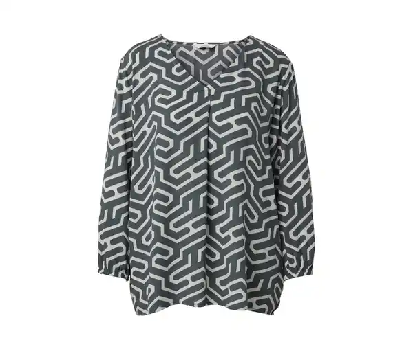Bluse in Crinkle-Optik Farbe: Grün-weißer Alloverprint Material: 100% Viskose (LENZING™ ECOVERO™) Maße: Gesamtlänge ca. 67 cm (Gr. 40) Passform: Regular Fit Leicht gekreppte Qualität aus reiner ViskoseV-AusschnittVoluminöse 3/4-Ärmel mit elastischem AbschlussAb Gr. 42 mit Brustabnäher für eine optimale PassformModerner graphischer PrintDiese Bluse beinhaltet Fasern aus natürlichem Rohstoff.