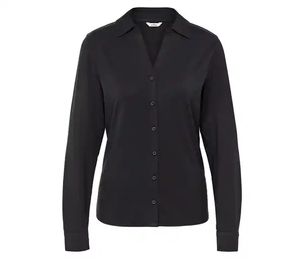 Blusenshirt mit Knopfleiste, anthrazit Farbe: Anthrazit Material: 95% Viskose, 5% Elasthan (Creora®) Maße: Gesamtlänge ca. 66,5 cm (Gr. M 40/42) Passform: Regular Fit Weich fließende Viskose-Stretch-QualitätVorderseite mit KnopfleisteV-Ausschnitt mit KragenÄrmelabschluss mit geknöpfter ManschetteVorverlegte SchulternähteMit Elasthan: formbeständig, perfekter Sitz, hoher TragekomfortDieses Blusenshirt beinhaltet Fasern aus nachhaltigem Holz.