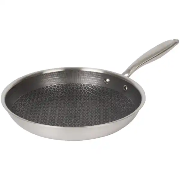Farbe: Silver, Material: Aluminium, Edelstahl, Art Back- oder Bratpfanne: Bratpfanne, Art Beschichtung: Edelstahl Antihaftbeschichtung, Geeignet für Art Wärmequelle: Gas, Elektro, Keramisch, Induktion, Material Griff: Edelstahl, Mit Deckel: Nein, Spülmaschinenfest: Nein, Artikelnummer: 3220245