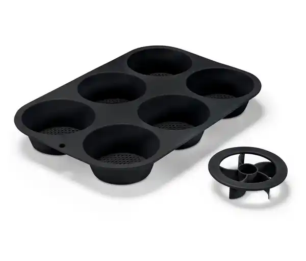 Brötchenbackform, perforiert Farbe: Anthrazit Material: Backblech 100% Silikon Brötchenstempel 100% Acrylnitril-Butadien-Styrol-Copolymere Maße: B x H x T Backblech ca. 31 x 3,5 x 21 cm Ø Brötchenformen und Brötchenstempel je ca. 9 cm Inhalt: Inkl. Gebrauchsanweisung Gewicht: Ca. 140 g Luftdurchlässige Struktur – optimale Luftzirkulation für ein krosses BackergebnisMit Brötchenstempel für eine gleichmäßige Prägung Kein zusätzliches Einfetten nötigFür 6 Brötchen oder anderes Gebäck aus Hefe-, Blätter- oder MürbteigFlexible Mulden zum einfachen HerauslösenHitzebeständig bis zu 230 °C