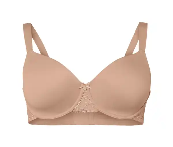 Bügel-BH Farbe: Beige Material: 73% Polyamid, 27% Elasthan Spitze 88% Polyamid, 12% Elasthan Futter 85% Polyamid, 15% Elasthan Spezielle, komfortable Schnittführung für große GrößenMit zarter Spitze an den Flügeln und am StegDoppellagig gearbeitete Cups mit FormbügelnMit dekorativem Metallplättchen und SatinschleifeSofte Microtouch-QualitätMit hochwertigem Markenelasthan für Langlebigkeit und hohe WaschbeständigkeitLängenverstellbare, extrabreite Träger3-fach verstellbarer SoftSeal®-Häkchenverschluss