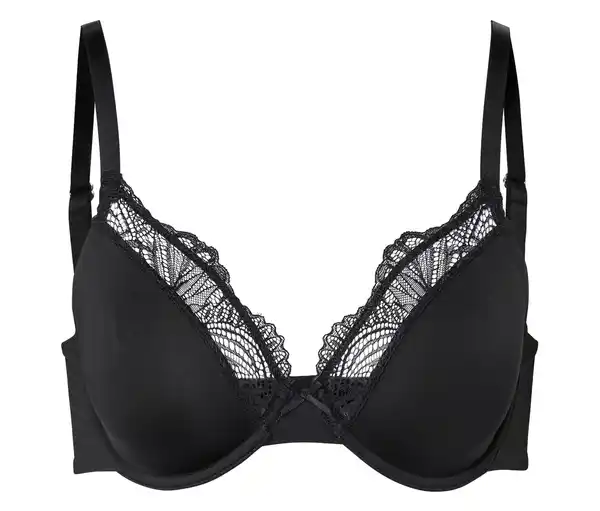 Bügel-BH, schwarz Farbe: Schwarz Material: 88% Polyamid, 12% Elasthan Spitze 83% Polyamid, 17% Elasthan Futter 85% Polyamid, 15% Elasthan Formt ohne Schalen ein natürliches DekolletéMit zarter SpitzeDoppellagige, blickdichte Cups – nahtlos vorgeformtSofte Microtouch-QualitätMit hochwertigem Markenelasthan für Langlebigkeit und hohe WaschbeständigkeitOptimale Passform: Verschlussbreite proportional an Cup-Größe angepasstLängenverstellbare Träger3-fach verstellbarer SoftSeal®-Häkchenverschluss