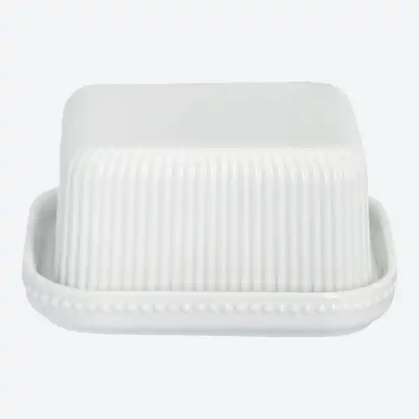 Diese Butterdose von Home überzeugt durch ihr klassisches Design aus Porzellan und praktische Funktionalität. Sie ist sowohl für die Spülmaschine als auch die Mikrowelle geeignet und bietet dank Rillenstruktur eine attraktive Optik für jeden Tisch. Bitte vor dem ersten Gebrauch gründlich spülen. Elegantes Design mit Rillenstruktur Maße: ca. 12 cm x 8 cm Spülmaschinengeeignet und mikrowellengeeignet Aus Porzellan gefertigt Mit LFBG-Zertifizierung Vor dem ersten Gebrauch gründlich spülen