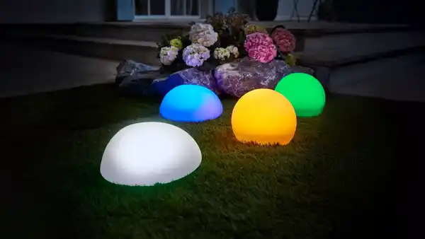 Für außen; IP44; Lichtfarbe: weiß, bernsteinfarben oder RGB; Leuchtdauer: 6–8 Std.; Ladezeit: ca. 8 Std.; inkl. Akku und Erdspieß; verschiedene Modelle