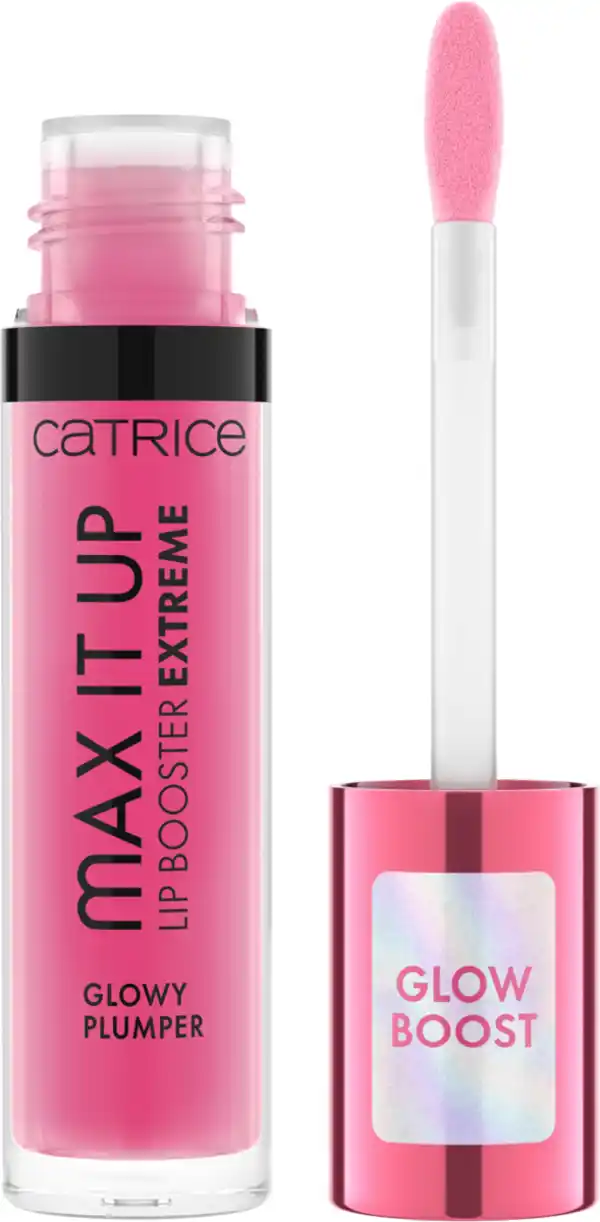 Mit dem Lipgloss Max It Up Lip Booster Extreme in der Farbe 040 Glow on Me von catrice lassen sich im Handumdrehen voluminös aussende Lippen zaubern. Die Rezeptur des Lipgloss ist mit Menthol & frischem Pfefferminzaroma angereichert, diese Kombination sorgt für optisch aufgepolsterte Lippen. Die Textur lässt sich mithilfe der soften Applikator-Spitze gleichmäßig auftragen. So werden die Lippen in einen verführerischen Glanz gehüllt. Darüber hinaus reagiert der Gloss mit dem pH-Wert der Lippen, welcher den Lippen einen Hauch Farbe schenkt. Für voller wirkende Lippen mit Hochglanz-Finish.