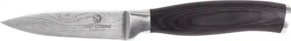 Aus strapazierfähigem Klingenstahl > Geschmiedete, eisgehärtete Klinge > Von Hand geschliffen und poliert > Gelaserte Oberfläche in Damast-Optik > Klingenlänge ca. 9 cm > Griff aus Pakkaholz und Edelstahl