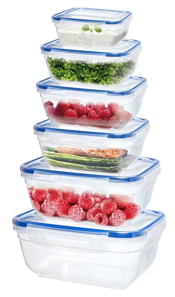 Aus Kunststoff > Deckel mit Klickverschlüssen > 100 % luft- und flüssigkeitsdicht > Temperaturbeständig von -25 bis +95 °C > Ohne Deckel mikrowellengeeignet > Spülmaschinengeeignet > Fassungsvermögen ca. 310 bis 4.000 ml