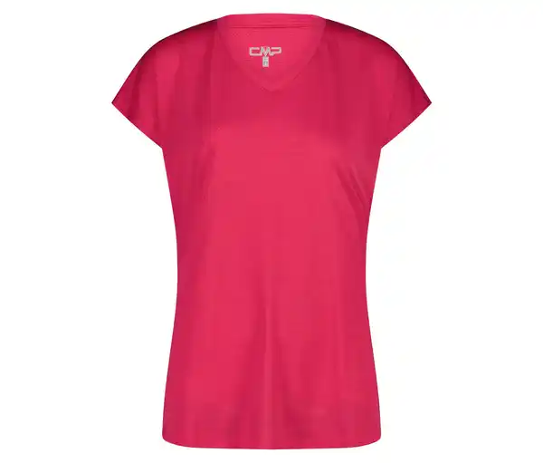 CMP Damen-Shirt mit V-Ausschnitt Farbe: Magenta Material: 100% Polyester Passform: Regular Fit T-Shirt mit lockerer Passform und breitem Kragen, ideal für alle sportlichen Aktivitäten im Sommer und in der FreizeitDer melierte Stoff ist leicht, atmungsaktiv und verhindert das Bilden von schlechten Gerüchen Schnelltrocknend