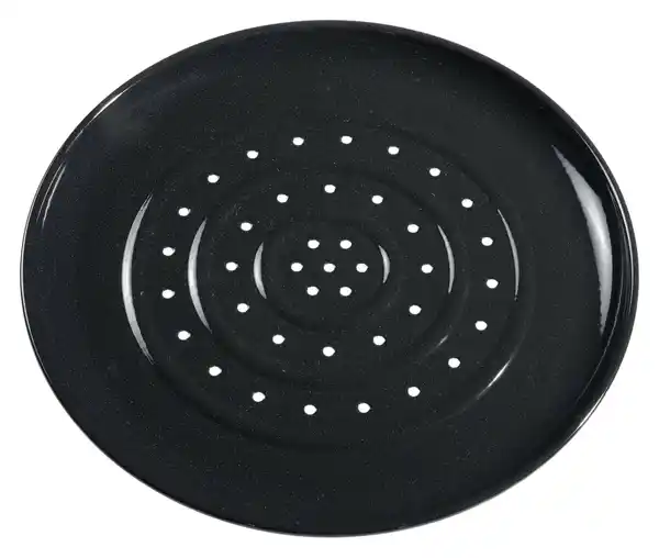Perforierter Boden > Mit lebensmittelechter Emaille-Beschichtung > Kratz- und schnittfest > Temperaturbeständig bis 400 °C > Geeignet für Gas- und Kohlegrills > Auch für den Backofen geeignet > Spülmaschinengeeignet > Größe ca. Ø 28 x 1,5 cm