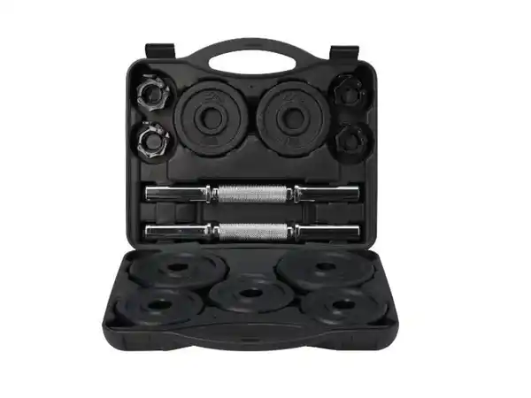 Set bestehend aus 2 Hantelstangen, 4 Klemmverschlüssen; 8x 1-kg-Hantelscheiben und 4x 2-kg-Hantelscheiben Mit Gusseisen-Kern für lange Haltbarkeit Bessere Griffigkeit durch gerändelten; vollständig verchromten Stahlgriff Platzsparender Aufbewahrungskoffer – inkl. Anleitung mit Übungsbeispielen 18-teiliges Set Produktmerkmale ;} Hantelgewicht: 1kg, 2kg Grifffläche: keine Angabe Anzahl Scheiben: 8x 1-kg-Hantelscheiben, 4x 2-kg-Hantelscheiben Lochdurchmesser: Scheibenloch/ Stange: ca. Ø 3,15 cm Material: Gusseisen, Stahl, Kunststoff Maße: Hantelscheiben 2 kg: ca. Ø 15,4 x 2,05 cm, Hantelscheiben 1 kg: ca. Ø 11,9 x 1,8 cm Gesamtgewicht: ca. 20 kg Lieferumfang: 2 Hantelstangen, 4 Klemmverschlüssen; 8x 1-kg-Hantelscheiben, 4x 2-kg-Hantelscheiben