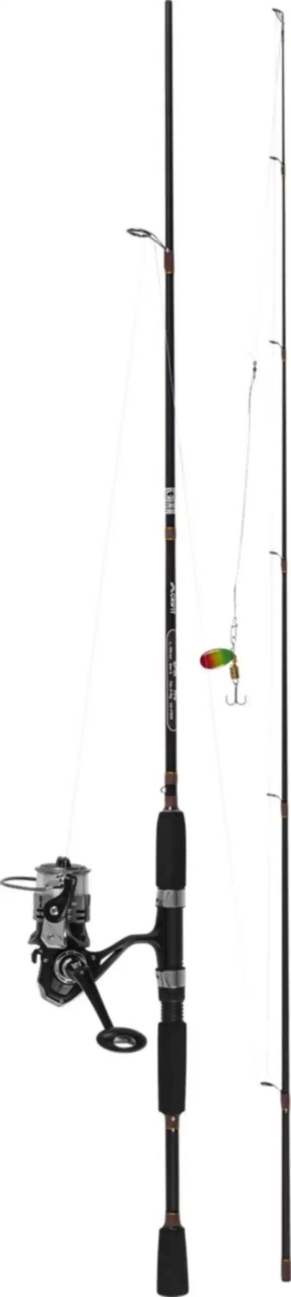 Ideal zum Forellen- und Barschangeln > Angelfertig montierte Carbon-Steckrute > Griff aus EVA-Material > Edelstahlringe mit hochwertiger Wicklung > Stationärrolle mit 3+1 Kugellagern > Rücklaufsperre und fein justierbare Frontbremse > Klappkurbel mit Soft-Touch-Knauf > Übersetzung 5,2 : 1 > Angelrolle Größe 2.000 > Bespult mit monofiler Angelschnur (0,25 mm) > Länge ca. 198 cm (Transportlänge ca. 102 cm) > Wurfgewicht 3 bis 15 g > 3 Jahre Garantie