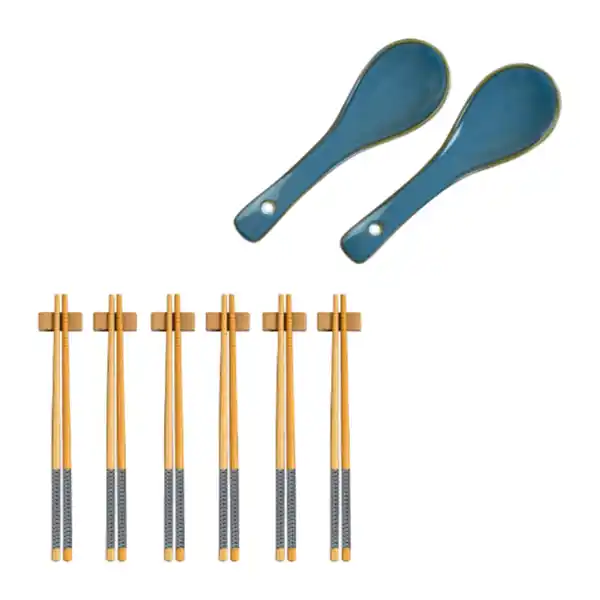 - Bambus-Stäbchen, 6 Paar, mit 6 Haltern, Farbvarianten: natur, dunkel-petrol, grau oder weiß mit Fächer-Muster