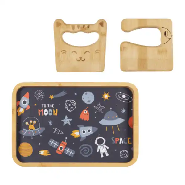 - Kindertablett, Stück, mit rutschhemmenden Pads, wendbarer Einleger, Weltall oder Bauernhof