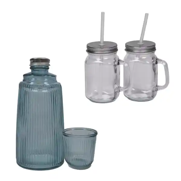 - Material: Glas, Deckel Metall, Strohhalm Kunststoff