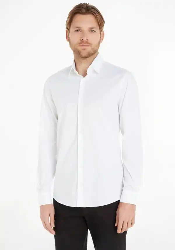 Calvin Klein Businesshemd POPLIN STRETCH SLIM SHIRT mit Kentkragen, Weiß