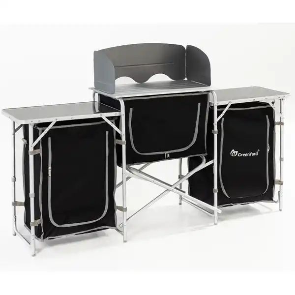 Campingküche XL Windschutz und rollbarer Arbeitsplatte, ca. 173 x 41 x 80 cm - Schwarz