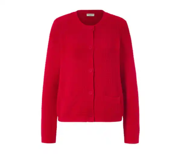 Cardigan aus Strukturstrick Passform: [Regular Fit] Farbe: [Rot] Material: [60% Baumwolle (aus ökologischem Anbau), 40% Polyacryl] Maße: [Gesamtlänge ca. 58 cm (Gr. M 40/42)] Weiche Qualität mit Bio-Baumwolle|Hochgeschlossener Rundhalsausschnitt|Mit Knopfleiste|Leistentaschen auf der Vorderseite|Dieser Cardigan schützt Wasserressourcen.|Auf Schadstoffe geprüft – von externen, akkreditierten Instituten