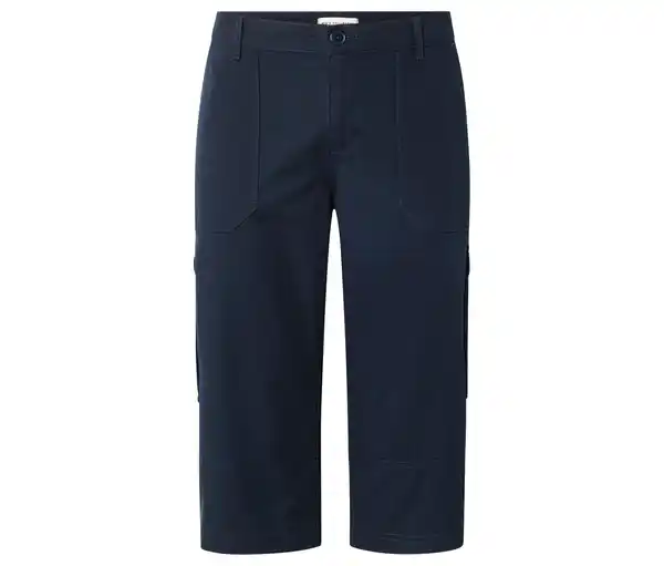 Cargo-Bermuda in 3/4-Länge, navy Farbe: Navy Material: 100% Baumwolle Maße: Innenbeinlänge ca. 46 cm (Gr. 34) Passform: Regular Fit Weicher Baumwoll-Twill2 seitliche Taschen, 2 seitliche Cargotaschen mit Klettverschluss und 2 Gesäß-Pattentaschen mit KlettverschlussKomfortbund – kein EinschnürenAus Baumwolle