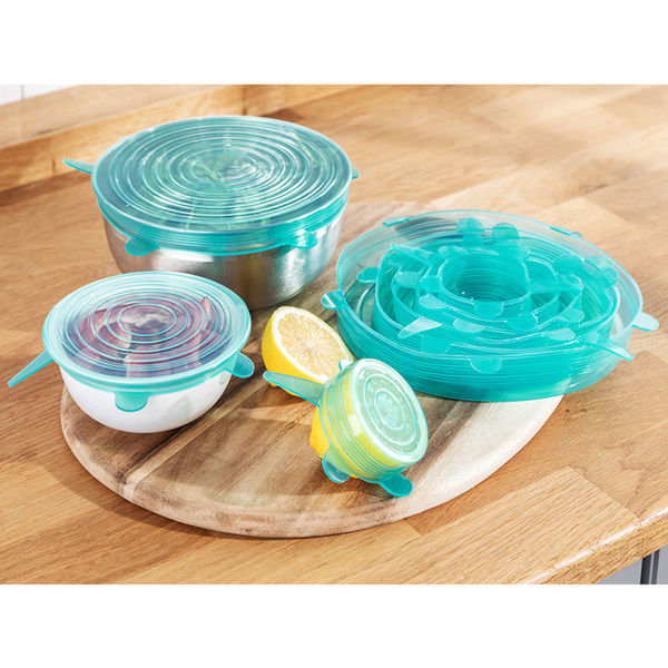 ### Silikondeckel 12er-Set - in 6 Größen - Zum Abdecken und Frischhalten - Extrem dehnbar und wiederverwendbar - Farben: Blaugrün, Granitschwarz oder Rot