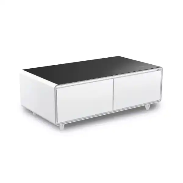 Dieser multifunktionale Couchtisch mit Kühlfächern, Bluetooth-Soundbar und Lademöglichkeiten von Caso Design in Weiß vereint zuverlässige Kompressorkühlung mit modernster Technik und smarten Features – ideal für Wohnzimmer, Büro oder Partykeller. Dank der 2 separaten Kühlschubladen mit einem Gesamtvolumen von 135 Litern bleiben Ihre Getränke und Snacks stets optimal temperiert. Die Temperatur lässt sich individuell einstellen: 3–8 °C in der linken Zone und 6–12 °C in der rechten – ganz nach Ihrem Geschmack. Der ECO-Mode sorgt dabei für besonders energieeffiziente Kühlung. Doch dieser Tisch kann mehr als kühlen: Mit der integrierten Bluetooth 5.0-Soundbar streamen Sie kabellos Ihre Lieblingsmusik – klar, kraftvoll und in wählbaren Klangprofilen (Auto, Rock, Film, Pop, Jazz). Die RGB LED-Lichtleiste sorgt für stimmungsvolle Beleuchtung – perfekt für jede Gelegenheit. Auch in puncto Komfort überzeugt das Modell: 2x Usb, 1x Usb-C und Wireless Charging (bis 15 W) bieten praktische Lademöglichkeiten für Smartphone, Tablet & Co. – damit Ihnen nie der Akku ausgeht. Das hochwertige Tempered Glass der Tischplatte mit einer Tragkraft von bis zu 200 kg rundet das durchdachte Design ab. Und für zusätzliche Sicherheit warnt ein akustisches Signal, wenn ein Kühlfach versehentlich offen bleibt. Betrieben wird der Tisch über ein ca. 280 cm Netzkabel mit einem Schukostecker. Erleben Sie Kühlung, Klang und Komfort in einem stilvollen Designobjekt mit dem Caso Design Couchtisch 'Sound & Cool Black' mit Kühlfächern, Bluetooth-Soundbar und Lademöglichkeiten!