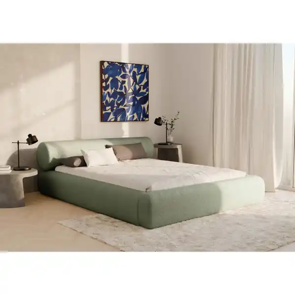 Schaffen Sie die ideale Atmosphäre zum Ausruhen mit diesem Chameo Polsterbett (Liegefläche: ca. 160 x 200 cm) in Grün inklusive Bettkasten. Maße und Angaben im Überblick Liegefläche: ca. 160 x 200 cm (B x L) Gesamtmaße: ca. 199 x 259 x 70 cm (B x L x H) Bettrahmenhöhe: ca. 34 cm Einlegetiefe: ca. 8 cm Bauhöhe Lattenrost: ca. 6 cm max. Belastbarkeit: ca. 250 kg max. Belastbarkeit pro Seite: ca. 125 kg Kopfteilhöhe: ca. 76 cm Sie erhalten einen Lattenrost aus Holz und Metall mit 34 Leisten ohne Aufpreis dazu. Ihre individuelle Interior-Ästhetik wird von dem mit einem Plüsch-Teddystoff-Bezug (100 % Polyester) hergestellten Bett durch seine gelassene Farbgebung in Grün zum Ausdruck gebracht. Die Teddystoff-Oberfläche ist besonders kuschelig-weich und zieht mit Ihrer cozy Erscheinung die Blicke auf sich. Zugleich weiß das Textil-Material, das überhaupt nicht zur als 'Pilling' bezeichneten Knötchenbildung tendiert, mit einer guten Lichtechtheit und einer guten Abriebfestigkeit zu gefallen. Das gepolsterte Kopfteil verleiht dem Möbelstück ein behagliches Finish. Ordentlich, nützlich und geräumig bereichert der Bettkasten das Stauraum-Angebot in den eigenen vier Wänden. Relax-Mode on: Entdecken Sie, wie sich erholsamer Schlaf wirklich anfühlt, mit diesem Polsterbett (ca. 160 x 200 cm) in Grün inklusive Bettkasten, Lattenrost und gepolstertem Kopfteil! Hinweise: Preis versteht sich ohne Matratze, Bettwaren und Dekoration. Informationen zu separat bestellbarem Equipment oder weiteren verfügbaren Varianten finden Sie in den Produktdetails unter 'Produktvorteile/Besonderheiten'. Gerne können Sie sich diesbezüglich auch über das