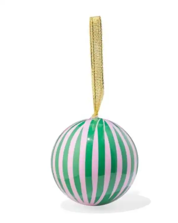Christbaumkugel 6 cm Papier, breite Streifen in Grün-Rosa