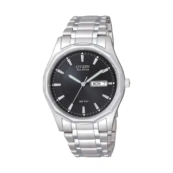 Citizen zählt zu den weltweit führenden Herstellern in der Uhrenindustrie und produziert durchschnittlich jede Sekunde eine Uhr. Die beliebten Zeitmesser der Marke, die 1918 gegründet wurde, werden in einer echten Manufaktur hergestellt und stellen technische Kompetenz und modische Vielfalt eindrucksvoll unter Beweis. Die Sport Eco-Drive ist die perfekte Uhr für alle, die Wert auf Qualität legen und sportliche Eleganz lieben. Ob im Alltag, im Business oder zu besonderen Anlässen: Die luxuriöse Herrenuhr mit Edelstahl-Gehäuse ist jederzeit ein Statement für guten Stil. Dazu trägt auch das Armband aus Edelstahl bei, das nicht nur robust, langlebig und angenehm zu tragen ist, sondern die Uhr auch zu einem wahren Kombi-Talent macht. Das schwarze Zifferblatt mit den Markierungen sorgt für noch mehr Chic. Präzision und Zuverlässigkeit garantiert das Automatikwerk im Innern. Der bewegliche Rotor wird durch die täglichen Handgelenksbewegungen beim Tragen aktiviert, sodass kein manuelles Aufziehen notwendig ist. Händewaschen, Duschen und sogar Schwimmen sind mit dieser Uhr dank einer Wasserdichtigkeit bis 10 bar problemlos möglich. Sicheren Halt und gute Verstellbarkeit garantiert die Sicherheits-Faltschließe.