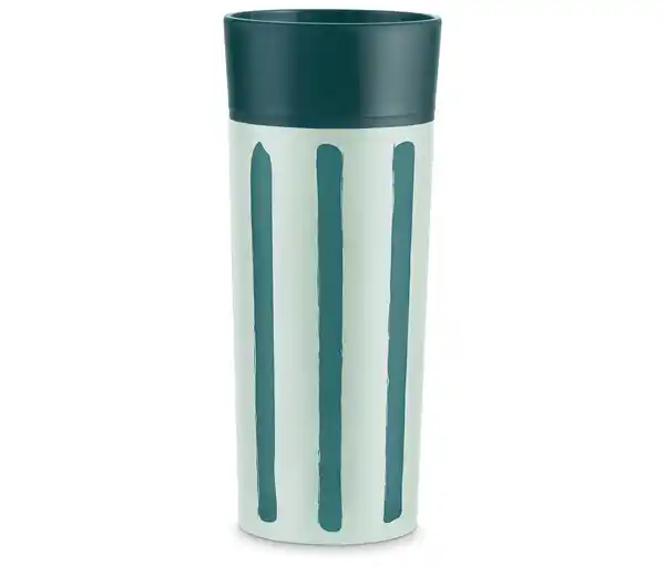 Coffee-to-go-Becher, Streifen Farbe: Limited Edition in der Trendfarbe 2026: "Transformative Teal" Becher: Hellgrün mit petrolgrünen Streifen Deckel: Petrolgrün Material: Edelstahl 18/10 Dichtung 100% Silikon Maße: Höhe mit Deckel ca. 19 cm Ø mit Deckel ca. 8 cm Höhe ohne Deckel ca. 15,5 cm Ø ohne Deckel ca. 7,5 cm Mehrwegbecher aus doppelwandigem EdelstahlHält Kaffee und Tee besonders lange heiß (und kalte Getränke lange kühl)Einhandbedienung zum Öffnen & Schließen360° TrinköffnungLeichte Reinigung durch zerlegbaren DeckelFassungsvermögen von ca. 300 mlSpülmaschinengeeignet (ECO 55° C.)