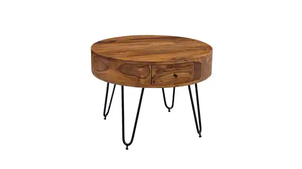 Couchtisch rund mit Schublade Sheesham massiv gebeizt 60 cm - THORE