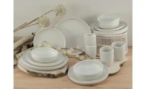 4 Speiseteller 28 cm 4 Dessertteller 21 cm 4 Mehrzweckschalen 16 cm 4 Kaffeebecher 37 cl